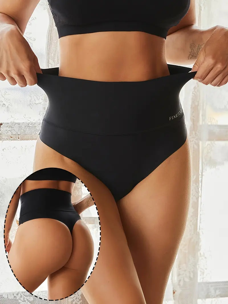 FINETOO Tanga con control de abdomen y cintura alta, sin costuras